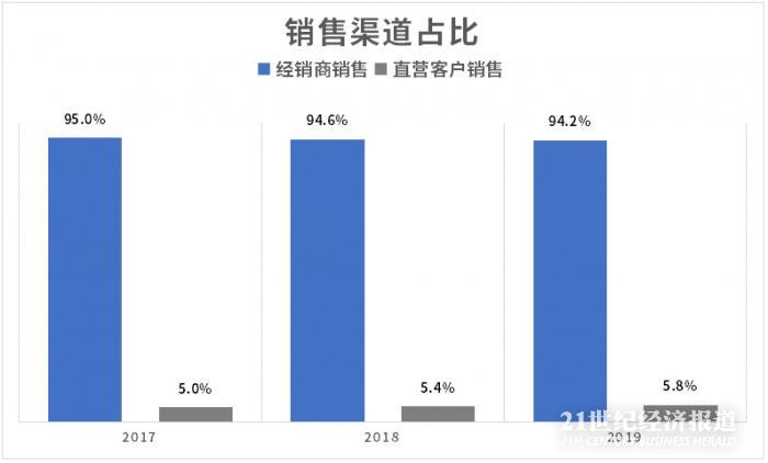 农夫山泉的销售渠道以经销商销售模式为主,通过经销商分销产品,2017-2019年拥有3876、3841和4280名经销商,经销商销售收入占总收入的95.0%、94.6%和94.2%,且通常不接受经销商退货,2017-2019年的退货金额仅占总收入比例为0.08%,0.08%和0.06%。