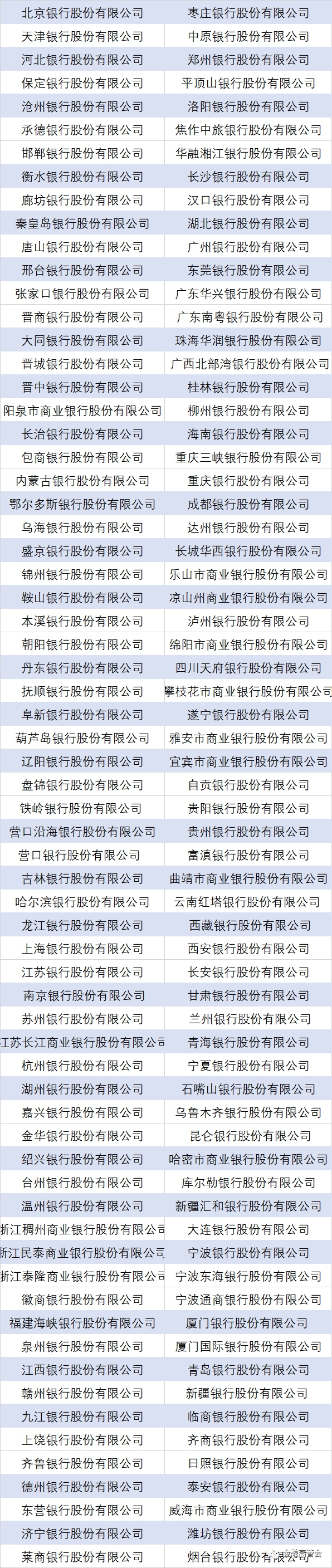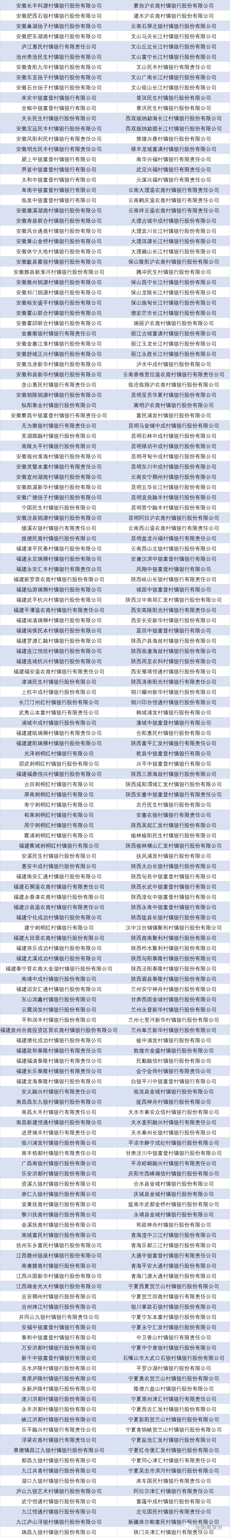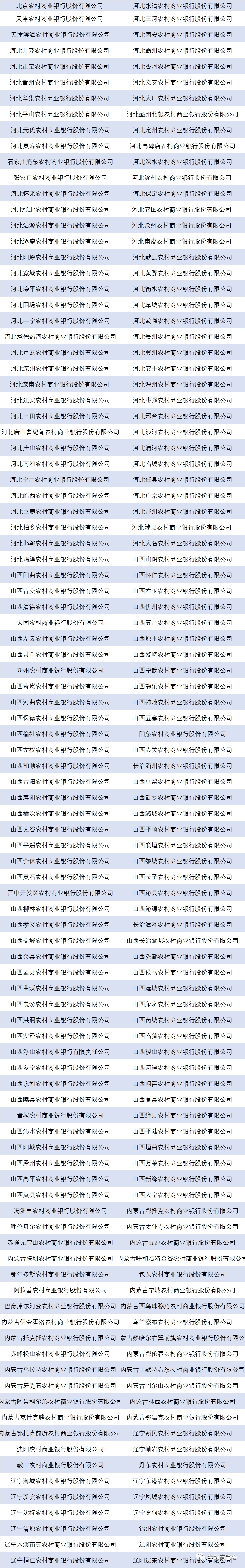 银行业金融机构法人4607家:开发性金融机构1家、住房储蓄银行1家、政策性银行2家、国有大型商业银行6家、股份制商业银行12家、民营银行18家、外资法人银行41家、城市商业银行134家、信托公司68家、金融租赁公司70家、消费金融公司24家、汽车金融公司25家、货币经纪公司5家、企业集团财务公司258家、金融资产管理公司4家、贷款公司13家、村镇银行1630家、农村商业银行1478家、农村信用社722家、农村资金互助社44家、农村合作银行28家、其他金融机构23家。