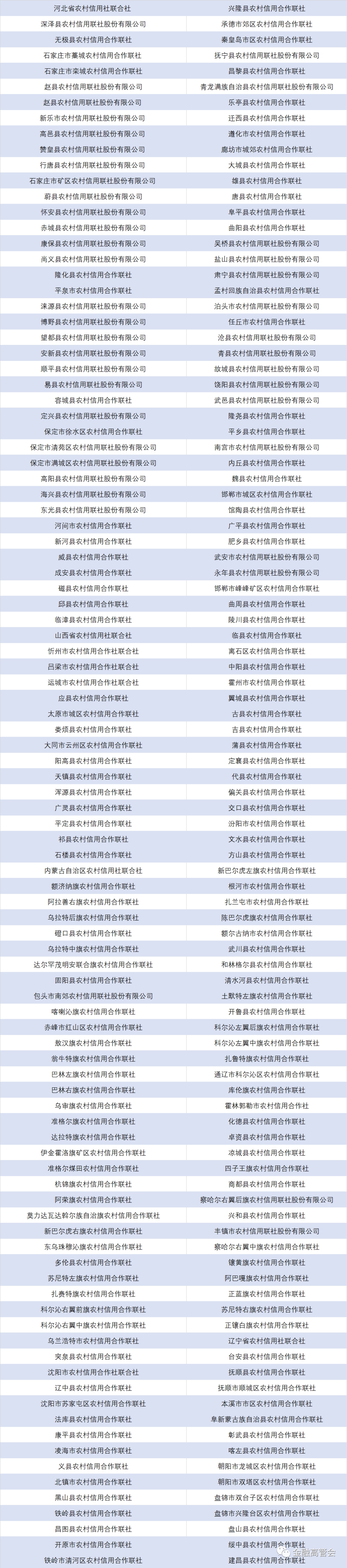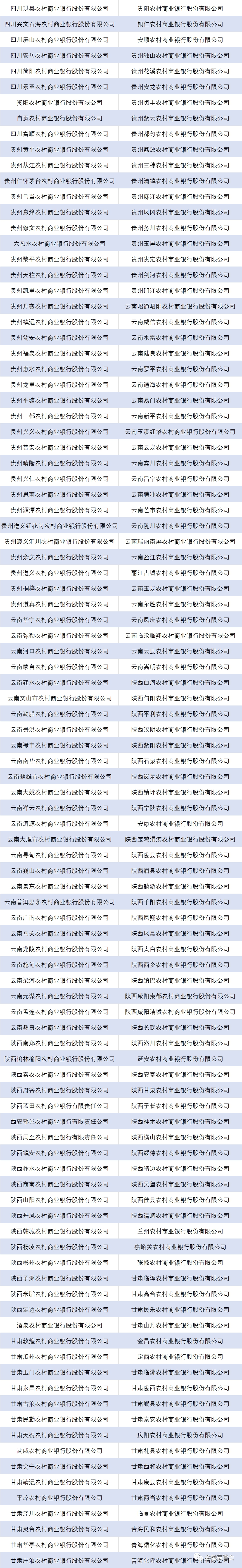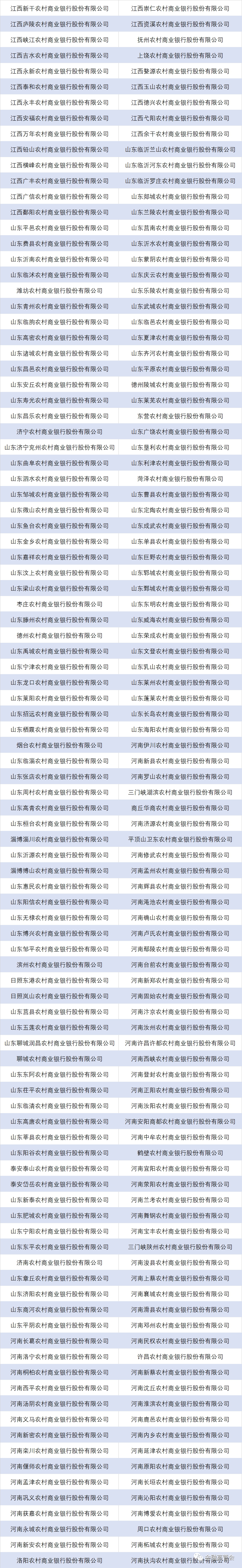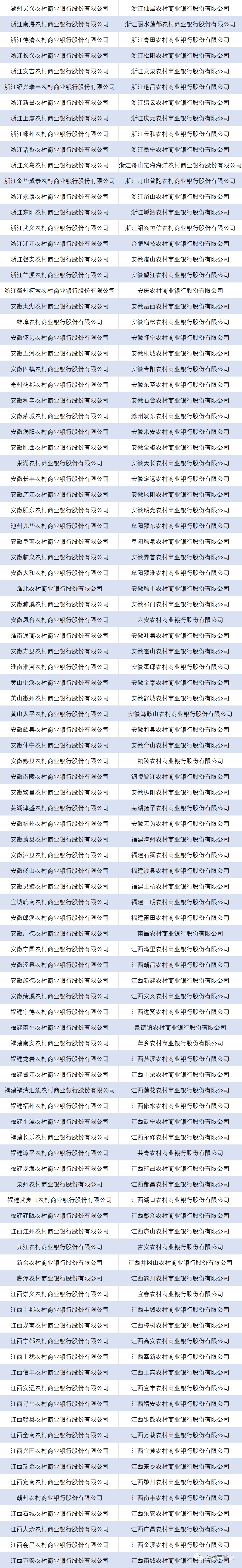 银行业金融机构法人4607家:开发性金融机构1家、住房储蓄银行1家、政策性银行2家、国有大型商业银行6家、股份制商业银行12家、民营银行18家、外资法人银行41家、城市商业银行134家、信托公司68家、金融租赁公司70家、消费金融公司24家、汽车金融公司25家、货币经纪公司5家、企业集团财务公司258家、金融资产管理公司4家、贷款公司13家、村镇银行1630家、农村商业银行1478家、农村信用社722家、农村资金互助社44家、农村合作银行28家、其他金融机构23家。