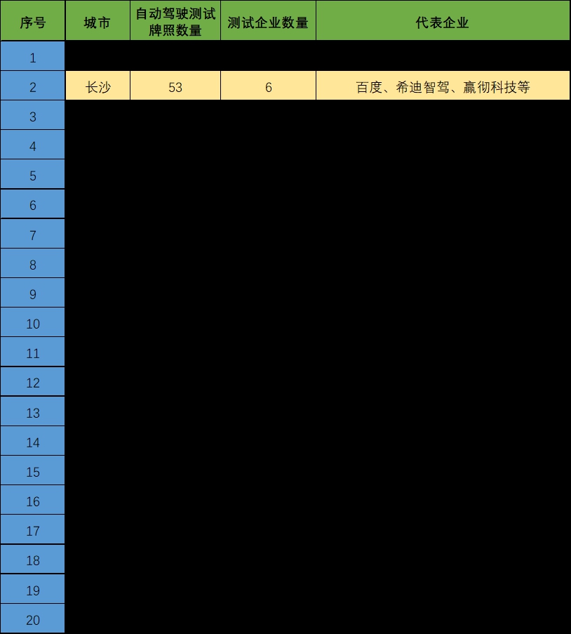 全国各城市自动驾驶测试牌照发放情况。智能相对论根据公开资料整理