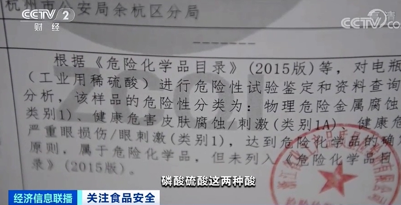 杭州市公安局余杭区分局治安行动大队民警 陈哲:磷酸硫酸这两种酸都具有高腐蚀性、高刺激性,这两种酸平时碰到人体都是伤害极大的,更不用说要把这两种酸吃进肚子里。