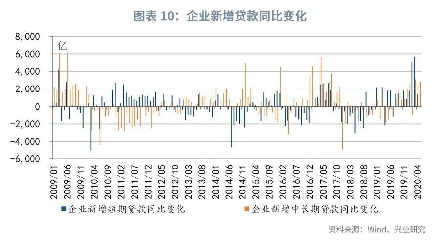 居民部门方面,5月居民短期贷款同比多增433亿,体现居民消费正在进一步恢复。此外,5月新增居民中长期贷款4662亿。2019年以来,除了易受季节性因素影响的1月、2月和10月外,居民中长期贷款增量都在4000到5000亿之间,有助于维持房地产市场的平稳健康发展。