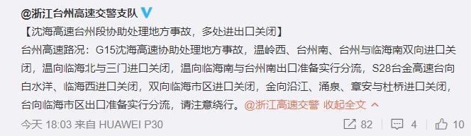 G1522上三高速,往三门方向白鹤、天台、洋头进口也在协助关闭控流。