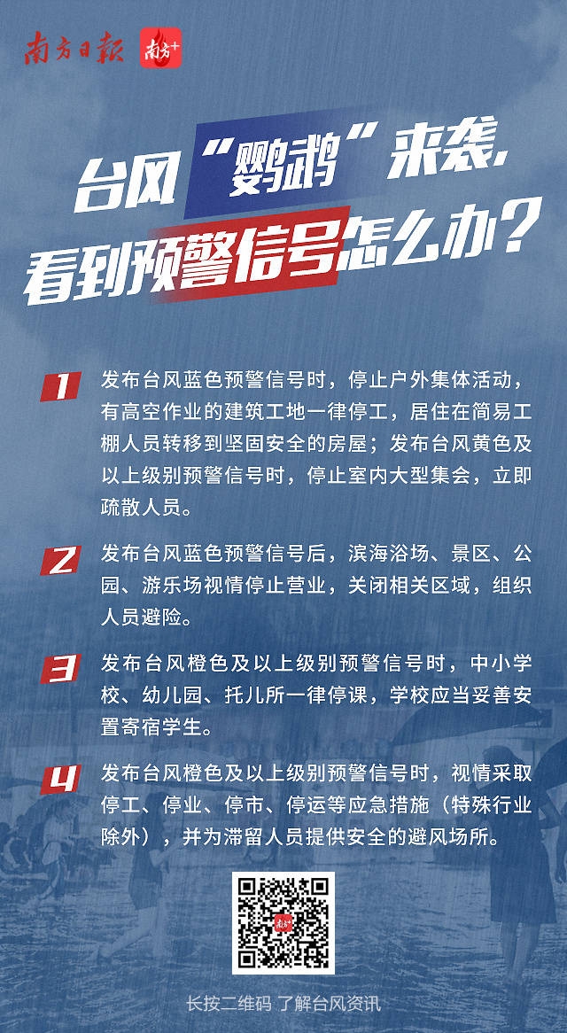 省三防办:台风橙色及以上预警时,中小学、幼儿园、托儿所停课