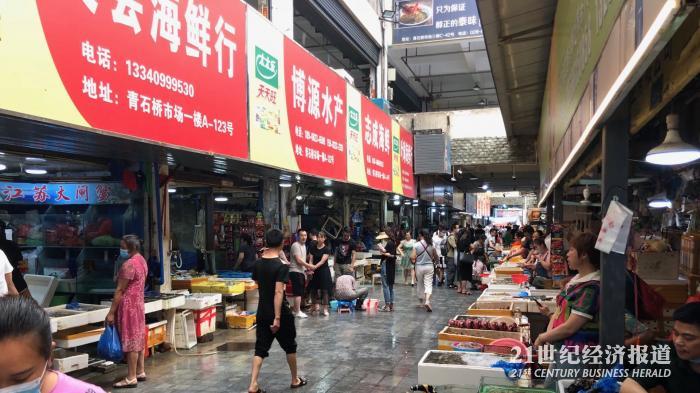 6月14日下午,21世纪经济报道记者来到成都市区最大的海鲜市场——青石桥海鲜批发市场。该市场位于成都市中心区域,为当地市民日常购买海鲜的主要场所。
