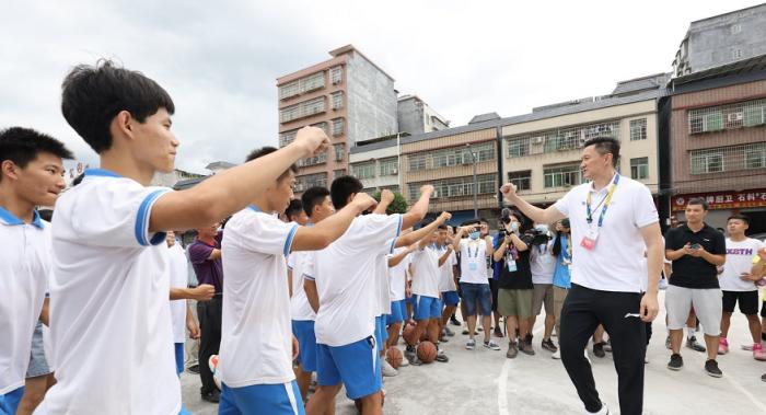 在水牛湾长尾洞(原培正培道学校旧址),杜锋为乐昌二中体育班的同学们带来一场“篮球明星课”。他介绍道:“抗日战争期间,私立岭南大学迁到韶关乐昌办学,并在这里留下了光辉的体育印记,希望你们能发挥前辈们的优良传统,意识到体育运动事业的重要性。”在篮球技术指导结束后,杜锋代表广东宏远篮球俱乐部向乐昌二中捐赠了30颗篮球。