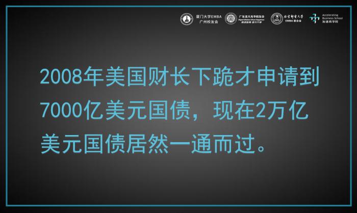 这个道理很简单,它不像其他国家,一旦发生经济灾难,可能还欠了很多外债。别的国家如果欠了美元债,要拿美元来还债,它就必须要有硬通货。对于美国人来说要还美元债只要印钞票就可以。所以美国的一切债务是美元债,美联储可以印钞票来平衡。
