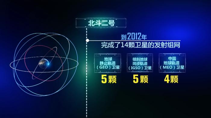 2004年,北斗二号系统建设启动。北斗二号创新构建了中高轨混合星座架构,到2012年,完成了14颗卫星的发射组网。这14颗卫星中,有5颗地球静止轨道(GEO)卫星、5颗倾斜地球同步轨道(IGSO)卫星和4颗中圆地球轨道(MEO)卫星。北斗二号系统在兼容北斗一号有源定位体制的基础上,增加了无源定位体制,也就是说,用户不用自己发射信号,仅靠接收信号就能定位,解决了用户容量限制,满足了高动态需求。北斗二号系统的建成,不仅服务中国,还可为亚太地区用户提供定位、测速、授时和短报文通信服务。