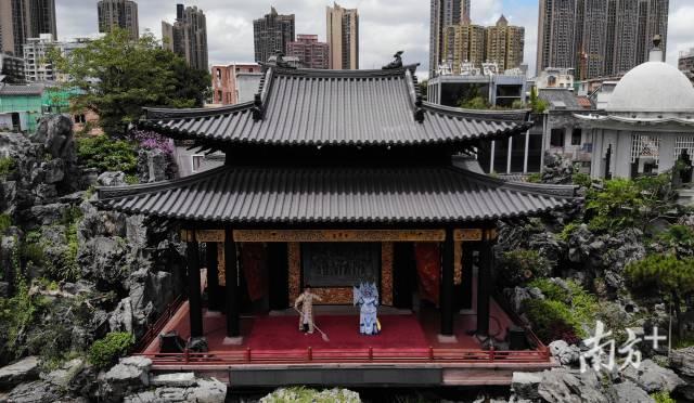 6月14日,广州市荔湾区恩宁路永庆坊,粤剧艺术博物馆内的广福台上,一出《花好月圆》正在上演。南方日报记者 吴明 摄