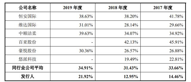 报告期内,依依股份和同行业公司中以生产销售个人卫生用品的恒安国际、维达国际、中顺等相比,毛利率相差10多个百分点,距离毛利率最高的中顺洁柔差距为17.71%;和同样以宠物一次性卫生护理用品生产销售为主的优派科技相比,依依股份毛利率依然逊色的。