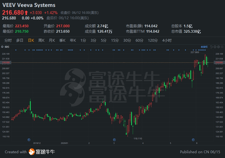 Veeva Systems公司是全球生命科学领域云软件的领导者,致力于创新、产品卓越和客户成功,已经为875家客户成功提供服务。其中,既包括世界最大的制药公司,也包括新兴生物技术公司。在上周三(6月10日)的盘中交易中,Veeva的股价创下历史新高,收盘时收涨6.09%。