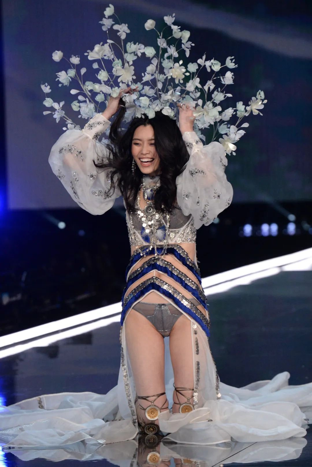 2017年11月20日,中国超模奚梦瑶在维密秀中不慎摔倒