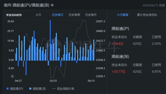 周一南向资金净流入31.27亿