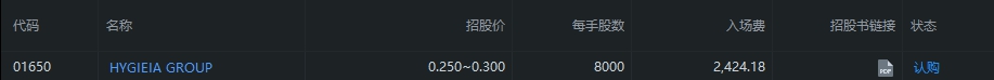 今日可认购新股:$HYGIEIA GROUP(01650.HK)$
