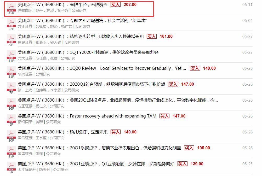 记者翻阅分析师研报发现,给予美团最高估值的为浦银国际,认为股价能够达到202港元。目前,美团股价已经突破了大多数分析师给予的价格预测,券商则不断更新其目标价。比如国信证券此前认为美团合理估值为140港元左右,招银国际认为美团合理估值在147港元附近。