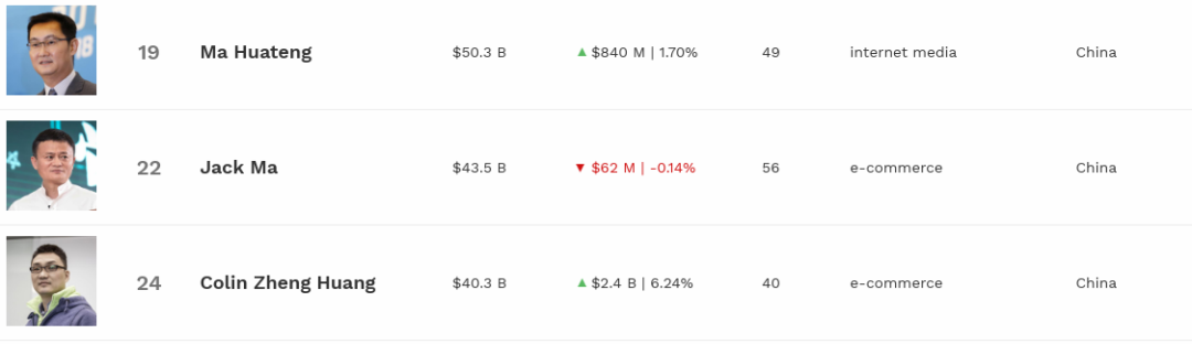 而在全球,王兴排名富豪榜120位,刘强东125位,雷军134位。中国富豪榜单前三的分别为马化腾(503亿美元),马云(435亿美元)、黄峥(403亿美元),全球富豪榜单分别排名21位、22位、26位