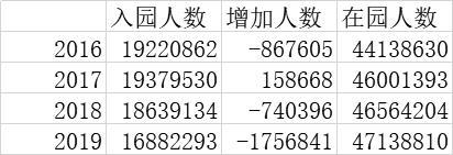 但是,2019年,全国幼儿园入园儿童人数比上一年减少175万余人,延续减少态势,且降幅扩大约2.4倍。