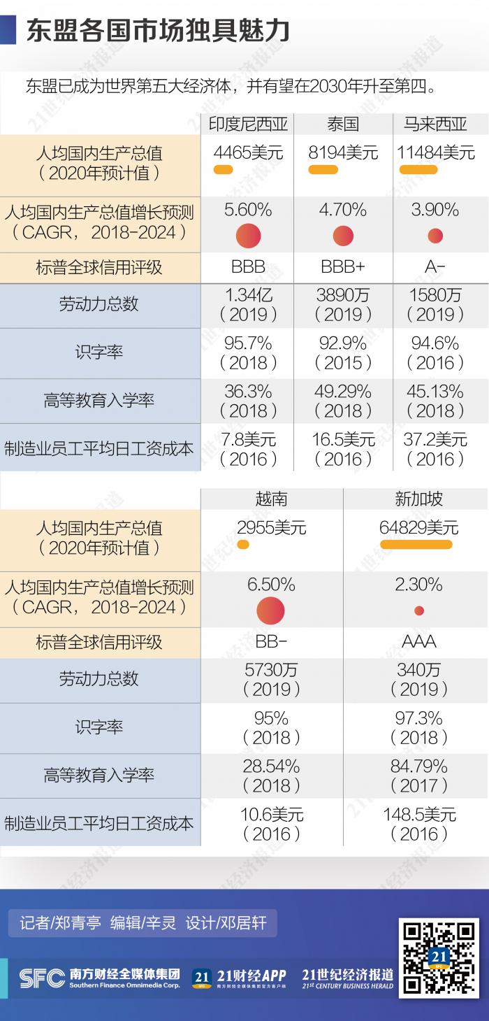 对于外国投资者来说,泰国不仅拥有位居东南亚中心的地理优势,而且制造业基础扎实,劳动力素质较高,基础设施较为完善。在世界银行2020年发布的营商环境报告中,泰国在190个国家排名中位列第21位,在东盟仅次于新加坡和马来西亚。
