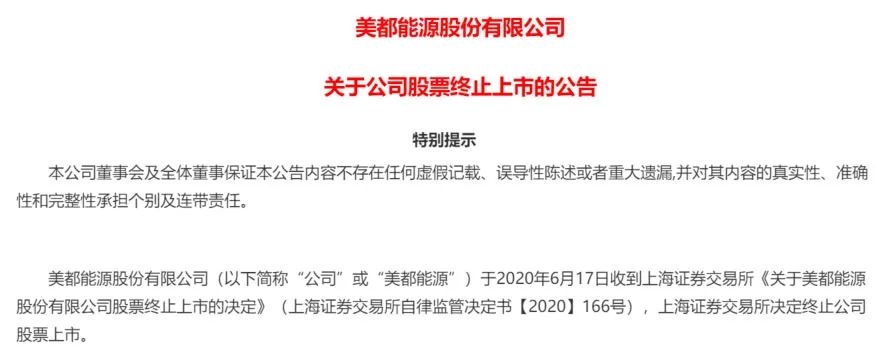6月17日晚,*ST美都发布公告称,公司股票被上海证券交易所终止上市。根据《上海证券交易所股票上市规则》的相关规定,公司股票将于6月29日进入退市整理期交易,退市整理期为30个交易日,预计最后交易日期为2020年8月7日。