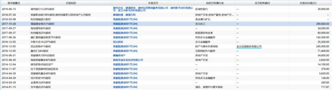 公司第一次真正意义上的跨界就放眼海外,彼时公司收购美国油田公司WAL,公司证券简称也随之变更为“美都能源”,结果标的资产经营不利,6年合计亏损3.24亿元。