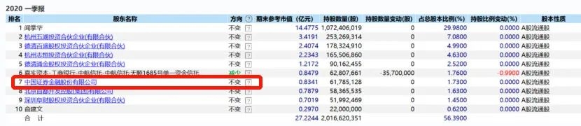 据查,中国证券金融股份有限公司最早于2015年3季度进入到公司前十大股东名册之中,此后持股数量没有变化,一直保持在6178.51万股,对应市值巅峰曾高达4.47亿元。