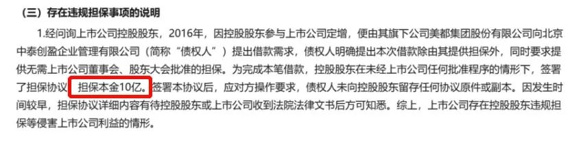 另外,公司还存在向控股股东违规进行10亿元的担保,严重损害上市公司利益。