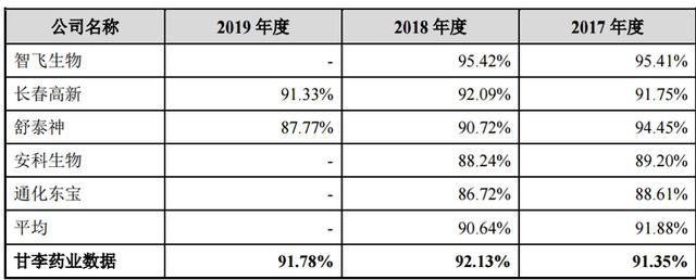 2017-2019年,公司主营业务毛利率分别为91.35%、92.13%和91.78%,一直保持在较为稳定的高水平,且略高于同行业上市药企。