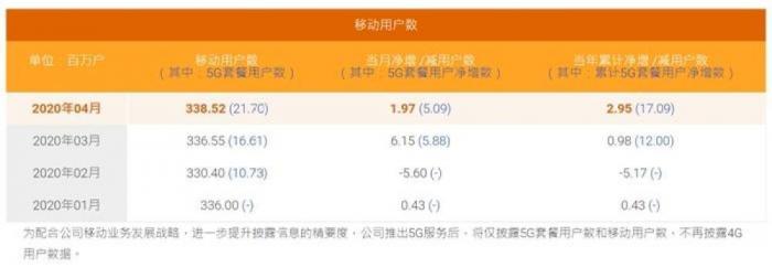 中国移动披露的数据显示,截至4月底,中国移动5G套餐用户数为4374.5万户。中国电信5G套餐用户数为2170万户。两者相加后的5G套餐用户数超6500万户。中国联通暂没有单独披露5G用户数。