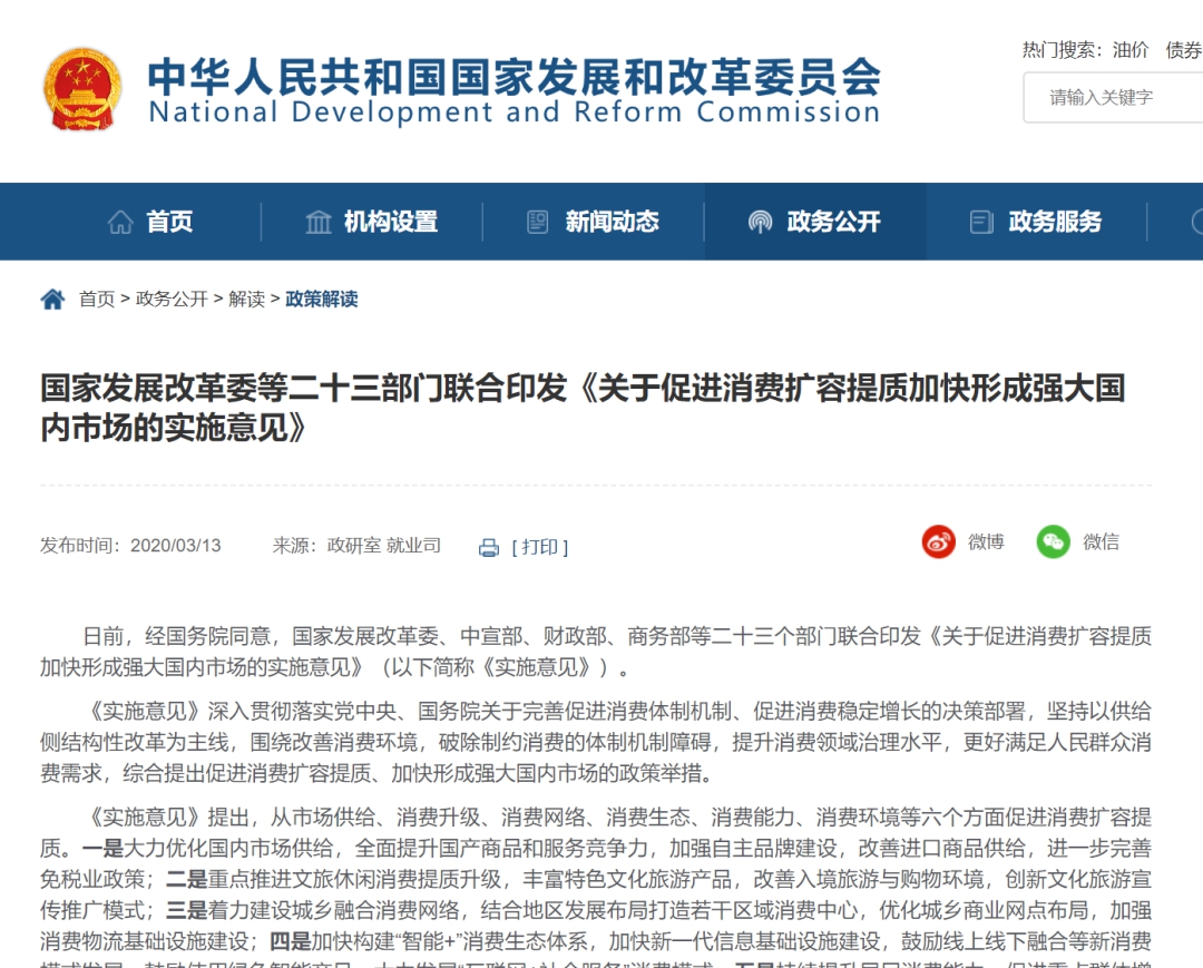 今年三月,国家发展改革委等二十三个部门印发的《关于促进消费扩容提质加快形成强大国内市场的实施意见》中,明确提到:完善市内免税店政策,建设一批中国特色市内免税店。鼓励有条件的城市对市内免税店的建设经营提供土地、融资等支持,在机场口岸免税店为市内免税店设立离境提货点;在免税店设立一定面积的国产商品销售区,引导相关企业开发专供免税渠道的优质特色国产商品,将免税店打造成为扶持国货精品、展示自主品牌、传播民族传统文化的重要平台。