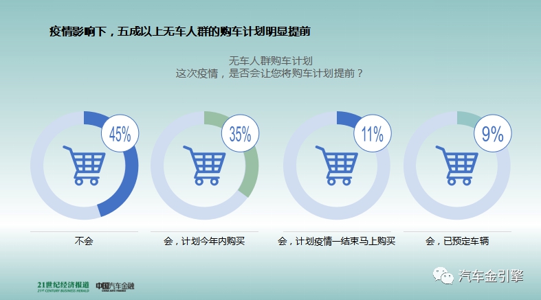 调查结果显示:受疫情影响,半数以上无车人群的购车计划明显提前,三、四线城市首购刚需人群将成为市场复兴的重点。