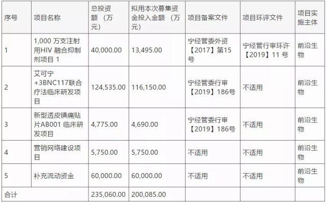 也是在这种有些“伤感”的预期下,前沿生物做出一个“大胆”的决定——募资20.01亿元,这个数额,几乎等同于2018年国内抗HIV病毒药物的市场总规模。
