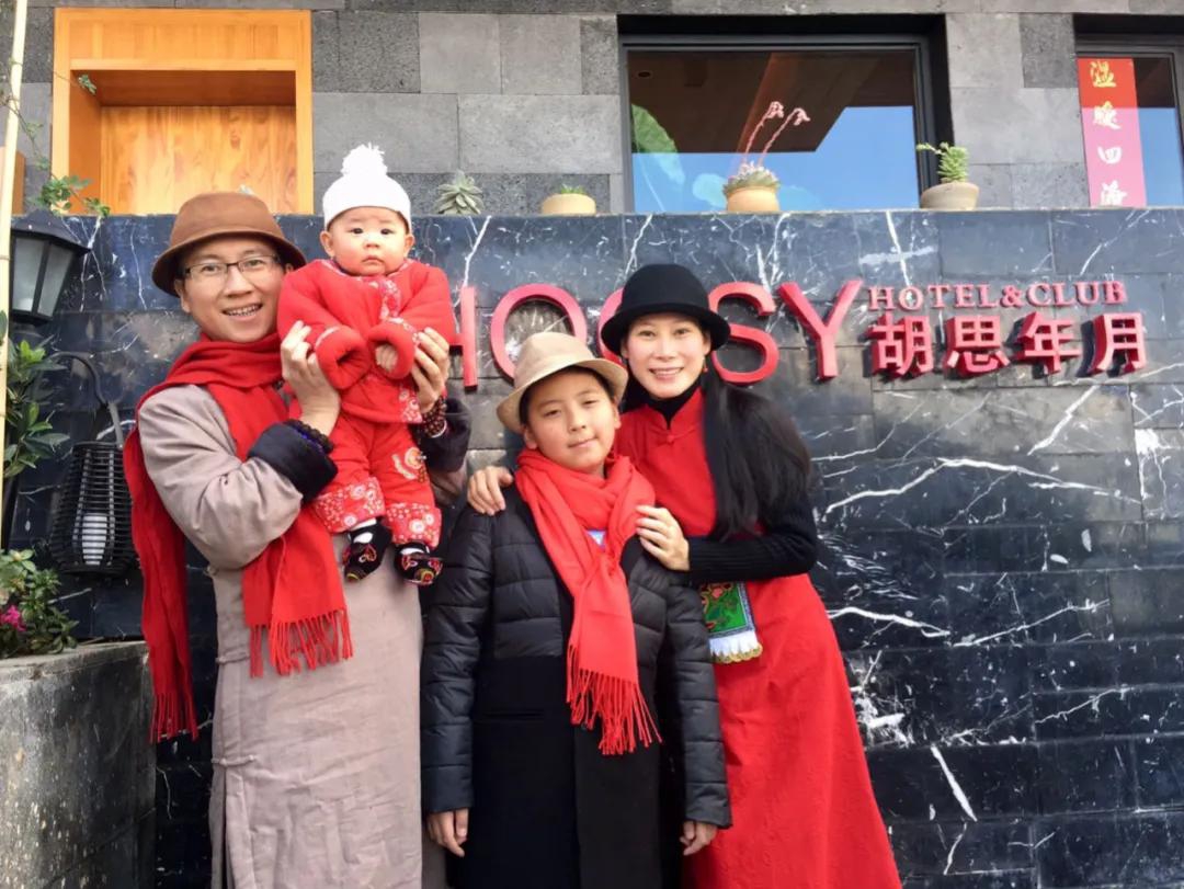 老颜一家四口在胡思年月过大年