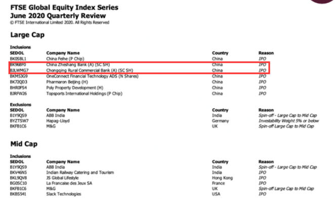 北京时间5月23日,富时罗素官网公布其第一阶段第四批次纳入A股的名单,此次富时罗素仅新纳入新纳入浙商银行、渝农商行两只A股银行股,未剔除A股股票。