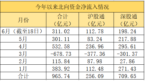 6月18日,是6月1日以来北向资金净流入最多的交易日。继前一日净流出27.21亿元之后,当日大幅净流入49.57亿元。