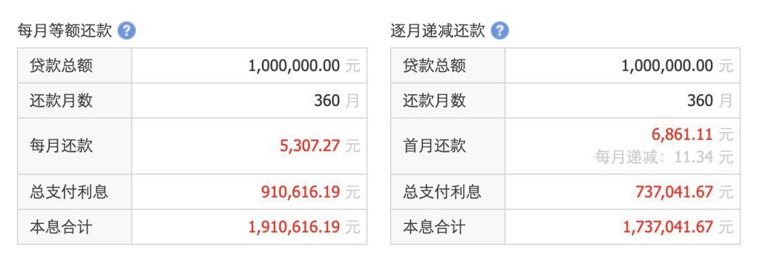 因为当你用等额本息法开始还房贷的时候,你会惊讶地发现,本息结构极其不合理,例如100万的房贷,月供5300元,利息就高达4000多,本金才1200元,简直是资本主义的剥削。