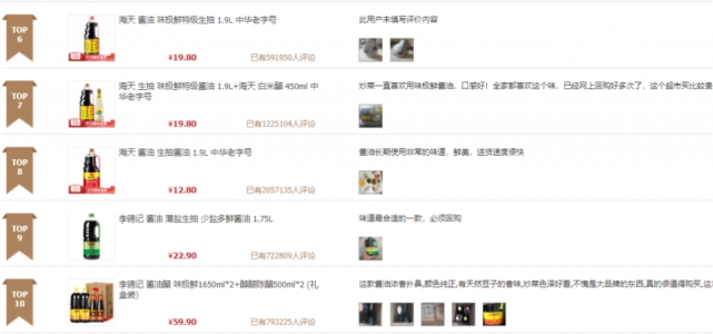 线上销售情况显示,在京东酱油销量排行榜前十中,不见加加酱油的身影。而加加单品销量最高的加加鲜味鲜生抽,评论仅有4.7万条,跟海天单品评论,完全不具备竞争力。很显然,加加在线上布局的效果同样不理想。