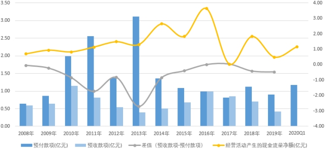 从数据层面分析,加加食品对原料采购的预付款项高于对经销商的预收款项。预付款和预收款对企业的现金流作用截然相反,当预付款项远高于预收款时,对企业现金流会产生一定的压力。