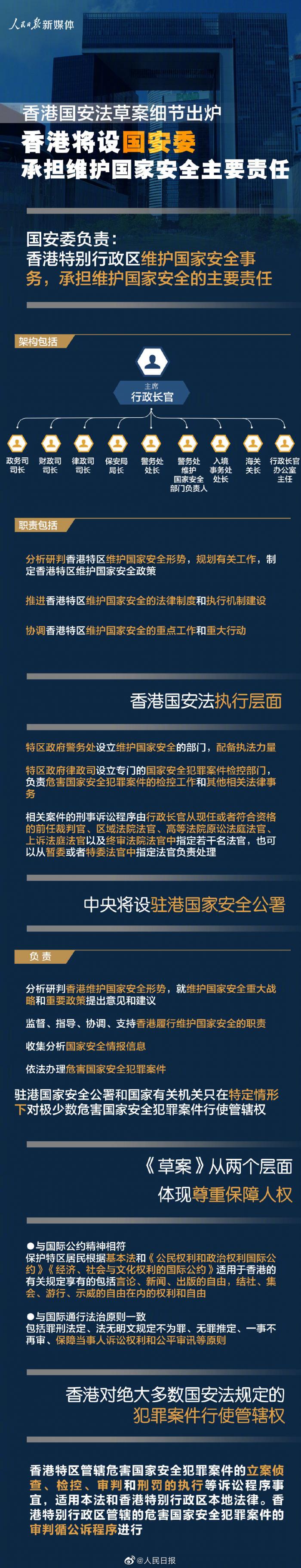 香港国安法草案细节出炉,香港将设国安委承担维护国家安全主要责任。国安委的职责包括哪些?对香港国安法草案,你还知道多少?一图了解!