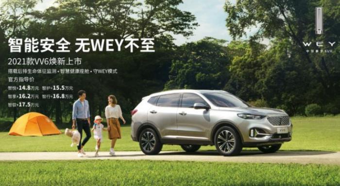 6月21日,长城汽车旗下高端品牌WEY 2021款VV6 上市,五款车型售价为14.8—17.5万元。