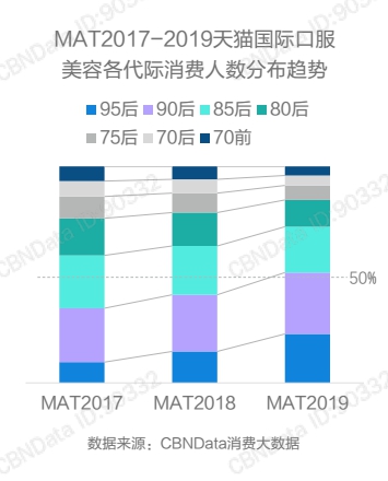 分析口服美容增速最快的原因,可能跟口服美容的消费者人数增长相关。据CBNData数据,口服美容90后和95后人群数量在2017-2019年有明显增长,用户群体占比超过50%。