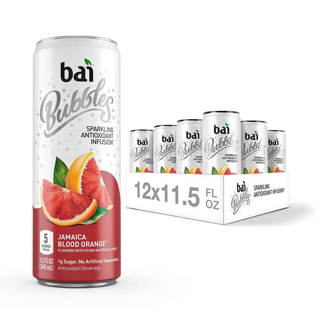 BAI血橙气泡水,含抗氧化成分血橙,每瓶仅有5卡路里,1克糖,不含人工甜味剂。