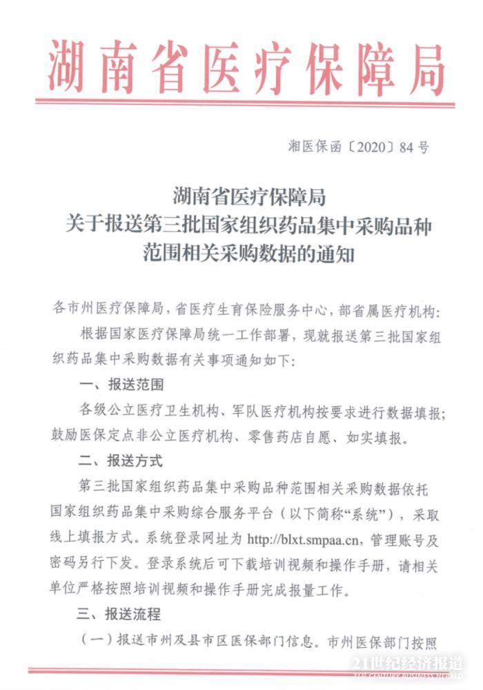 附件:湘医保函〔2020〕84-关于报送第三批国家组织药品集中采购品种范围相关采购数据的通知号