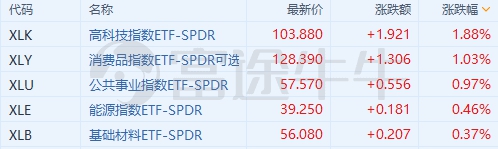 周一标普各板块表现