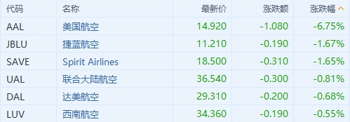 主要航空股表现 | 来源:富途证券