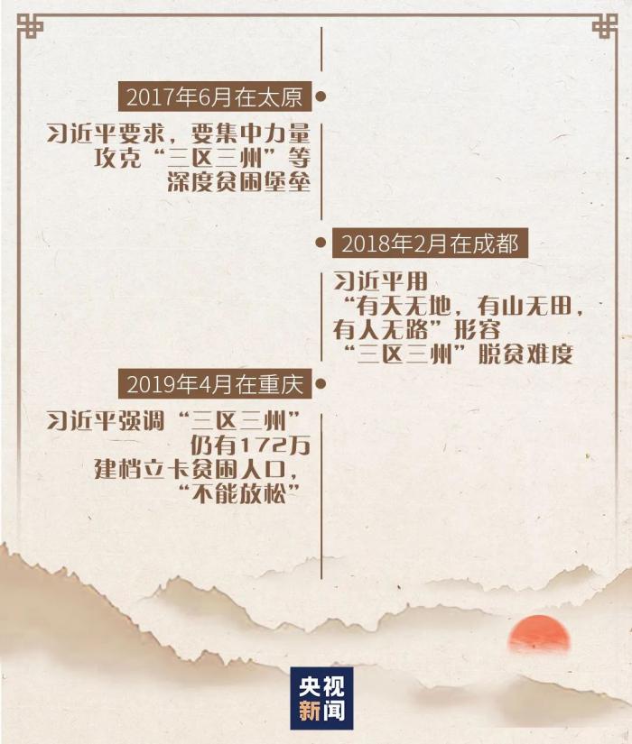 今年3月,习近平总书记在决战决胜脱贫攻坚座谈会上强调,要继续聚焦“三区三州”等深度贫困地区,落实脱贫攻坚方案,瞄准突出问题和薄弱环节狠抓政策落实。