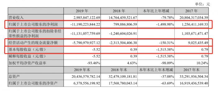 前一日晚,众泰汽车2019年报告终于出炉,财报显示公司2019年营业收入为29.86亿元,同比下降79.78%;净利润亏损111.9亿元,去年同期盈利约8亿元,同比下降幅度高达1498.98%;同期公司经营活动产生的现金流量净额为-57.9亿元,去年同期为-23.1亿元,同比下降150.31%。公司计划不派发现金红利,不送红股,不以公积金转增股本。