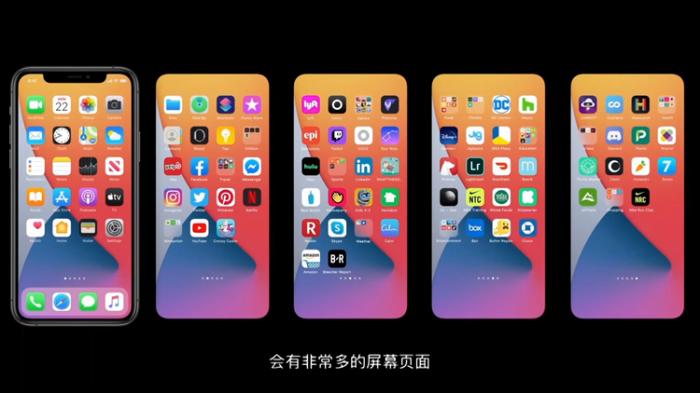 首先苹果宣布在iOS 14中加入了“App资源库”视图,该视图可自动将应用程序组织到新的组和列表中。有了新的“App资源库”视图,苹果现在允许用户在其主屏幕上隐藏应用程序,让桌面更加整洁。