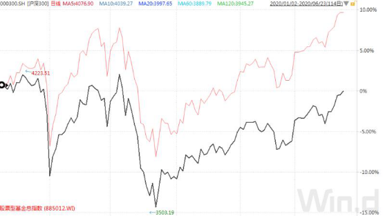 整体来看,数据显示,截至6月22日,今年以来沪深300指数涨幅0.13%,同期公募市场权益类基金平均收益14.12%。