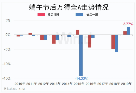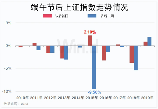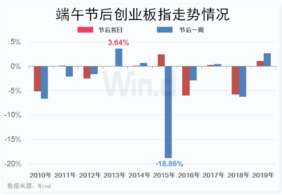 展望端午节后市场走势,Wind梳理过去10年同期历史数据显示,A股市场跌多涨少。