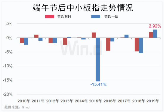 3、中小板指方面,Wind数据统计显示,过去10年,中小板指节后首日飘红5次,其中2019年涨幅最大,达2.00%;同期飘绿次数5次,其中2018年跌幅最大,达-4.82%。节后首周飘红3次,其中2019年涨幅最大,达2.92%;飘绿次数7次,其中2015年跌幅最大,达-15.41%。